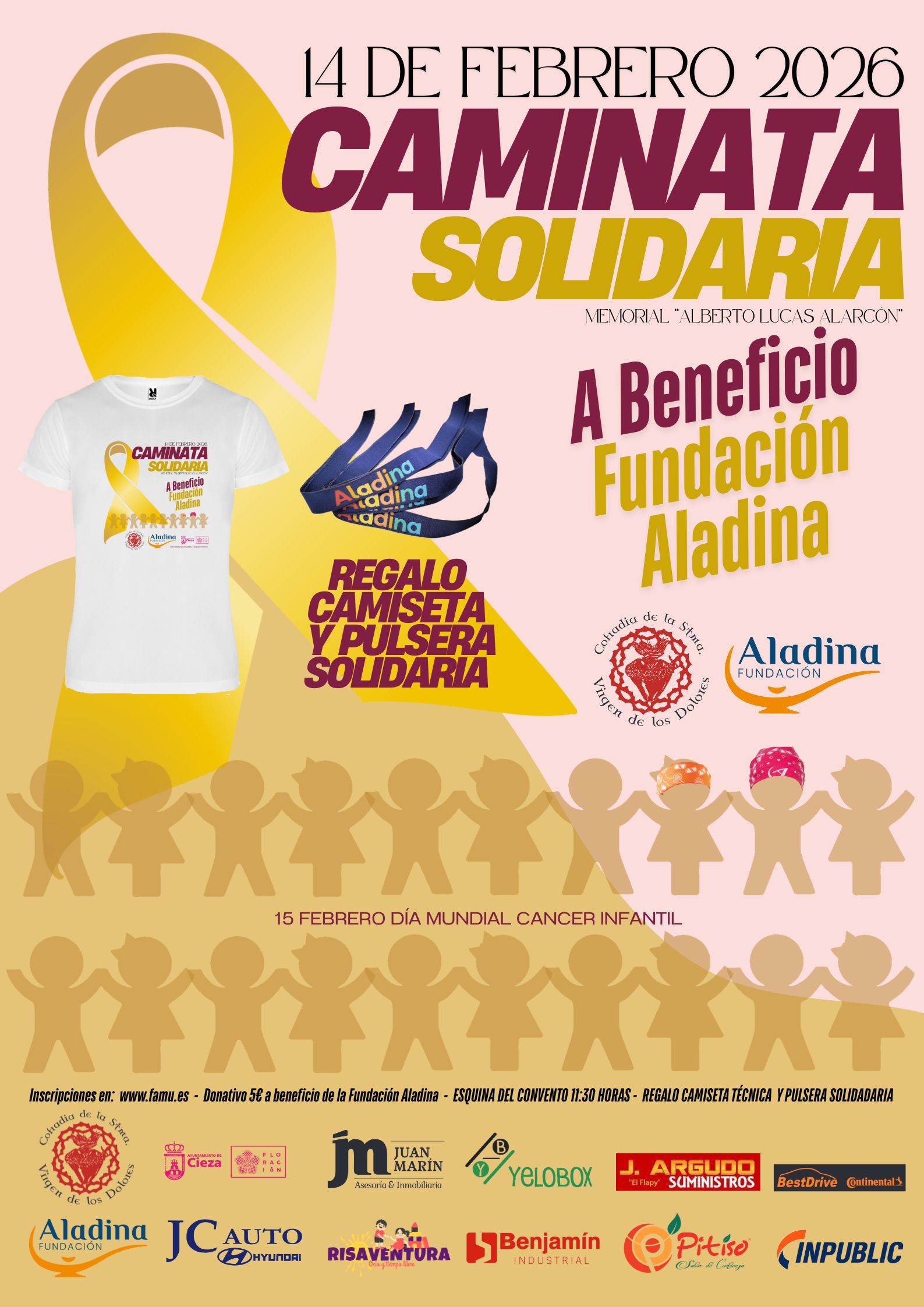 El próximo 14 de febrero, damos pasos llenos de solidaridad con la Caminata Solidaria a beneficio de la Fundación Aladina, organizada por la Cofradía de la Stma. Virgen de los Dolores.