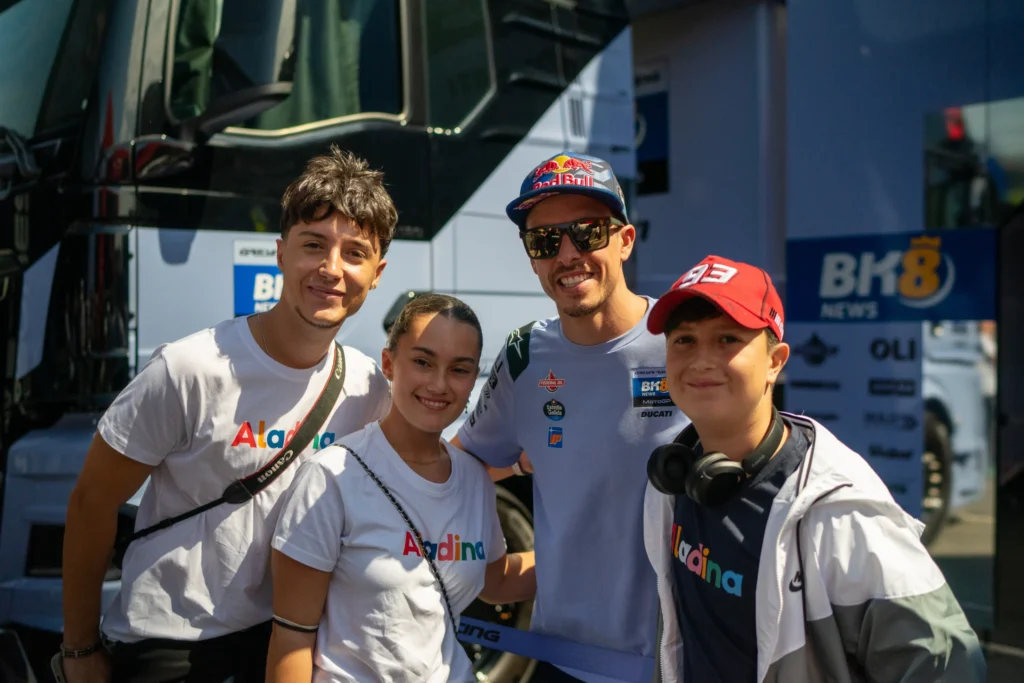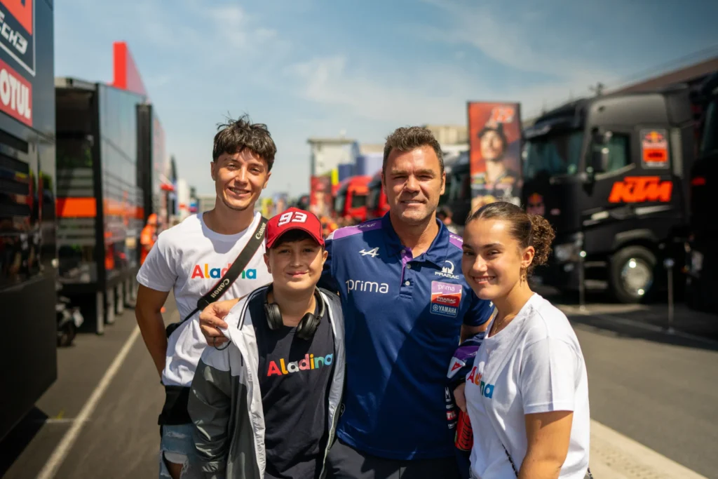 Y la emoción no tardó en llegar. El día previo a la carrera llegaron los encuentros con pilotos y pudimos ver como nuestros aladinos enviaban mensajes emocionados a sus familias, que sentían cada instante a pesar de la distancia. Pero lo mejor estaba por venir: el encuentro con Marc Márquez.